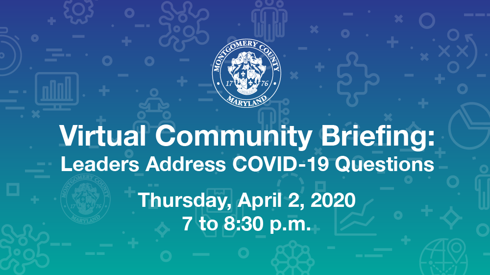 Join County Executive, Montgomery County Public Schools Superintendent Dr. Jack Smith, Montgomery County Health and Human Services - MD Dr. Travis Gayles and Montgomery County, MD Office of Emergency Management & Homeland Security Director Dr. Earl Stoddard who will respond to questions County residents have submitted via social media and email related to COVID-19 and the County’s ongoing public health efforts.