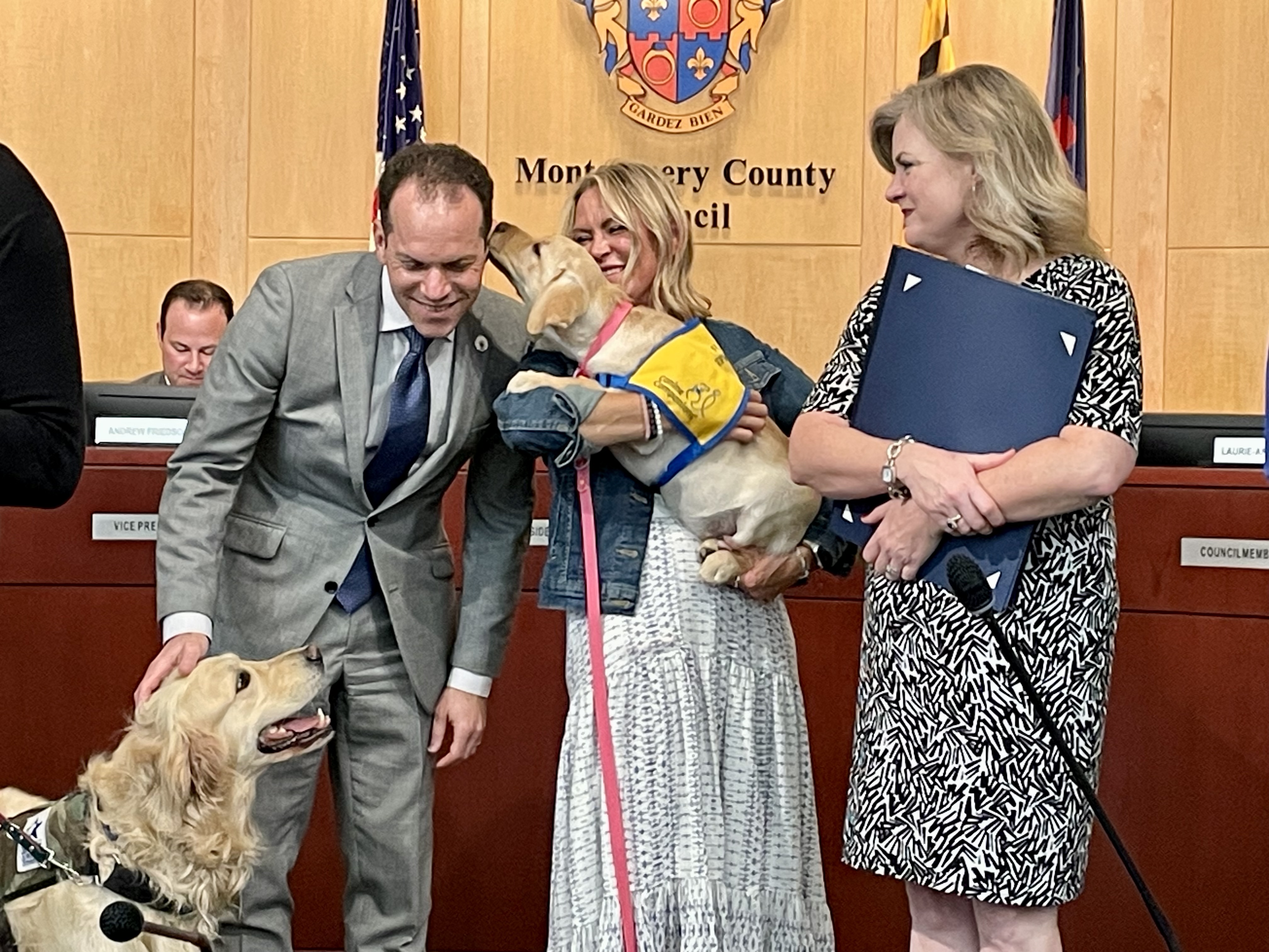 Esta semana hemos mostrado nuestro agradecimiento a nuestros amigos de cuatro patas, cuyos extraordinarios servicios cambian la vida de las personas discapacitadas. El Mes Nacional del Perro de Servicio, conocido en inglés como National Service Dog Month, es reconocido en septiembre como un momento para incrementar la concientización y mostrar aprecio sobre el trabajo que realizan los perros de servicio y el apoyo que ofrecen a las personas a su cargo. Estos perros dedican sus vidas a ayudar a sus compañeros humanos. También quiero mostrar mi apreciación hacia todas las organizaciones y las personas que entrenan los perros de servicio en el Condado de Montgomery y en todo el estado.
