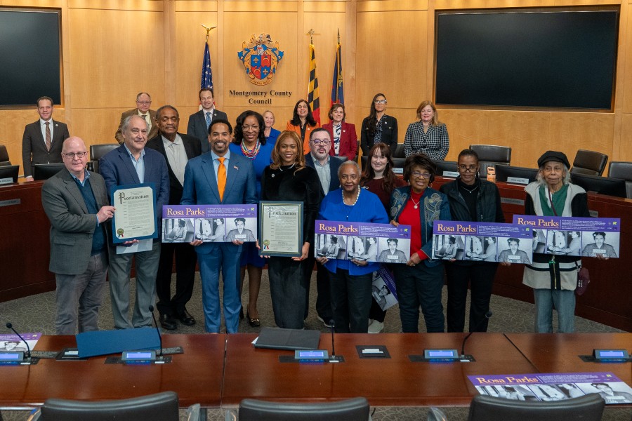 On Dec. 2, 2025, Councilmembers Laurie-Anne Sayles and Will Jawando were joined by County Executive Marc Elrich to present a proclamation recognizing Rosa Parks Day. Additional speakers included Chris Conklin, director of the Montgomery County Department of Transportation (MCDOT) and Jim Stowe, director of the Montgomery County Office of Human Rights.