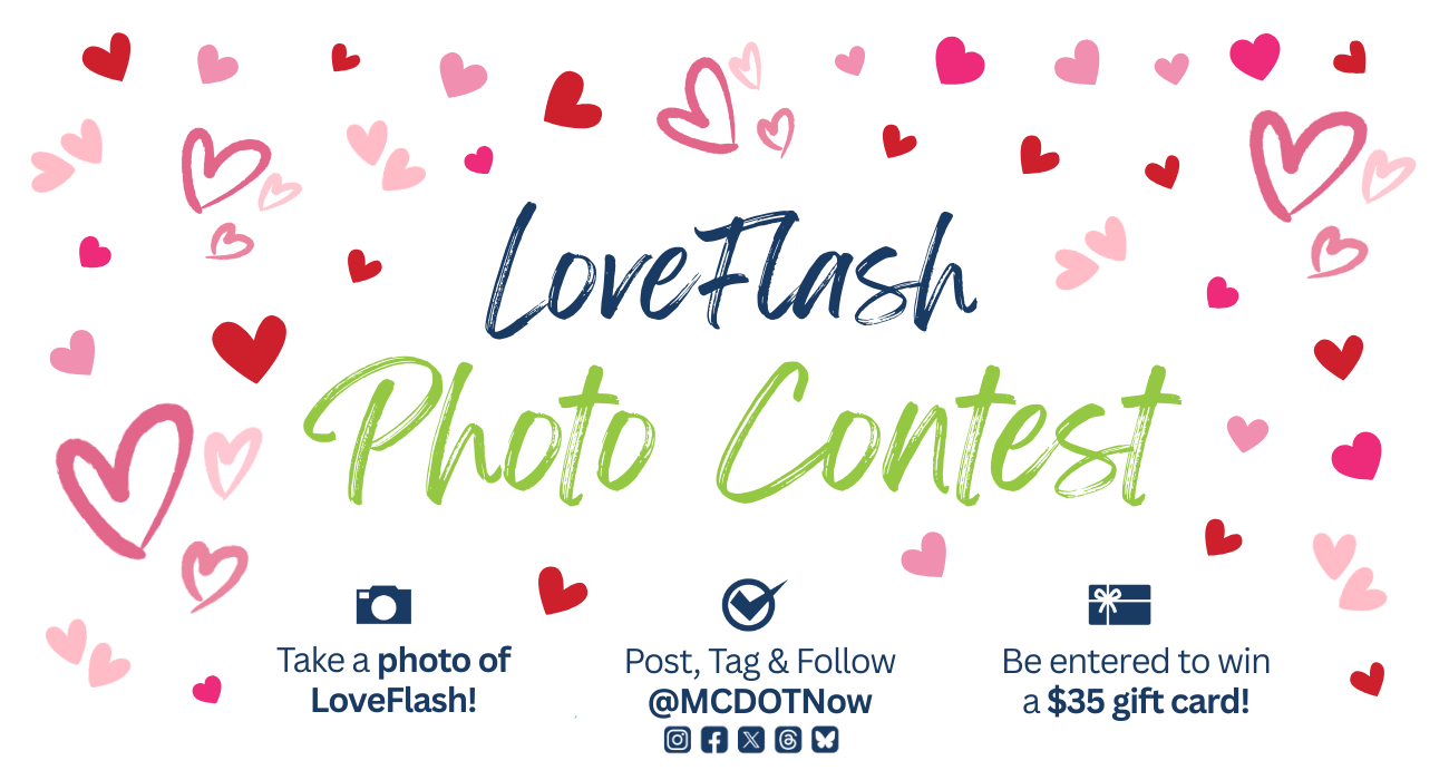 Take pictures of a lighted LoveFlash bus and post to social media to be entered into a weekly drawing for a $35 gift card through Saturday, Feb. 28.