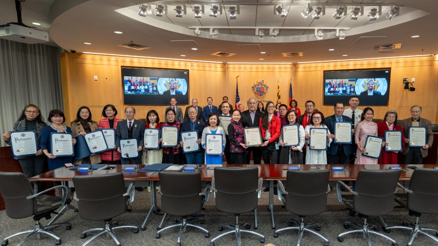 On Feb. 10, 2026, Councilmember Kristin Mink and County Executive Marc Elrich present a proclamation recognizing Lunar New Year.