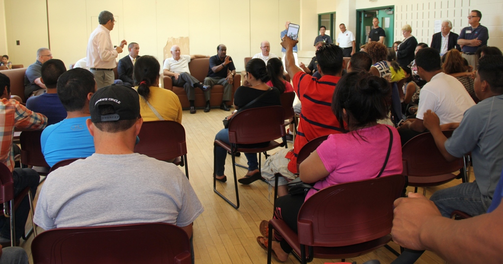 County Executive Ike Leggett was joined by U.S. Senator Ben Cardin (Maryland, 3rd District) at the Long Branch Community Recreation Center in Silver Spring near the site of the August-10 Flower Branch Apartments fire.