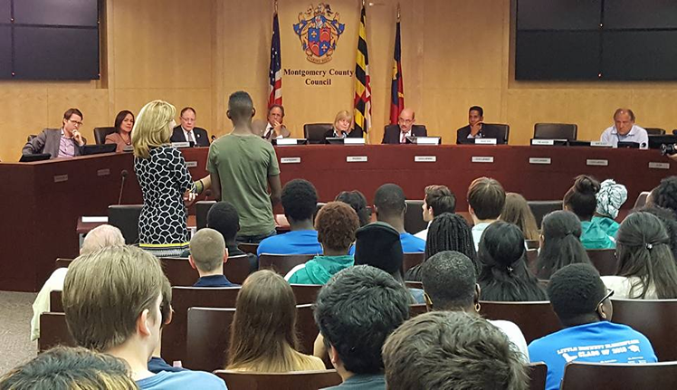 The Montgomery County Council's annual Youth Town Hall Meeting had a capacity crowd of about 300 at the Council Hearing Room in Rockville. Students from schools across the County and Montgomery College asked a wide range of questions including how to encourage diversity in teaching; how to promote more food trucks in the County; and what steps are being taken to expand afterschool programming. Click here to watch the Youth Town Hall Meeting.