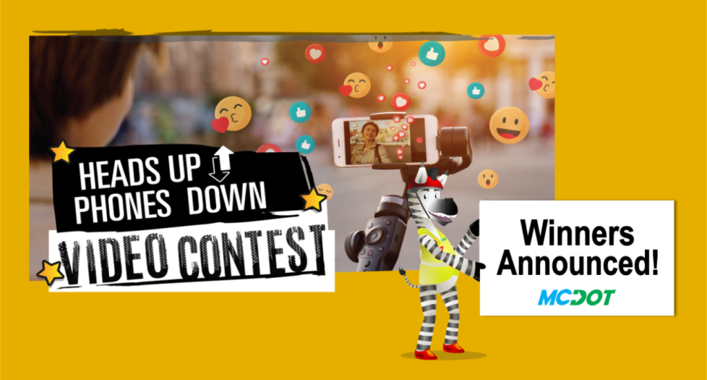 View the winning videos and photos of the winners on the Heads Up, Phones Down contest website at montgomerycountymd.gov/DOT-PedSafety/HUPD.