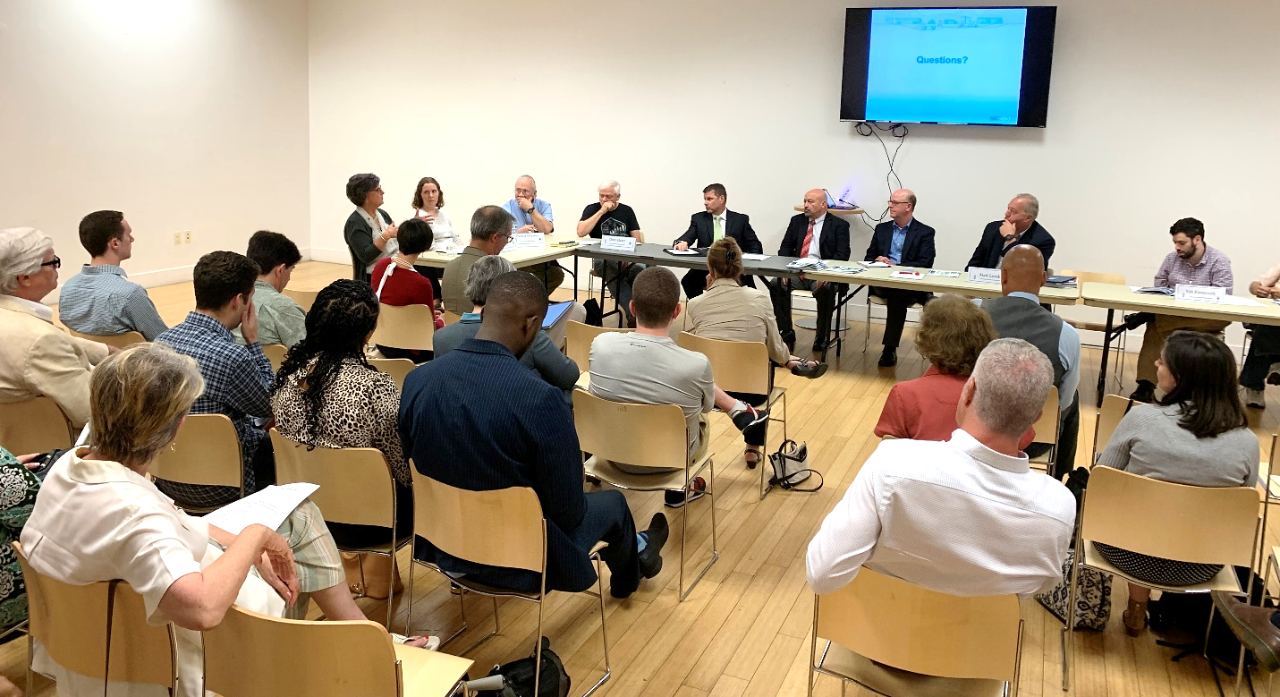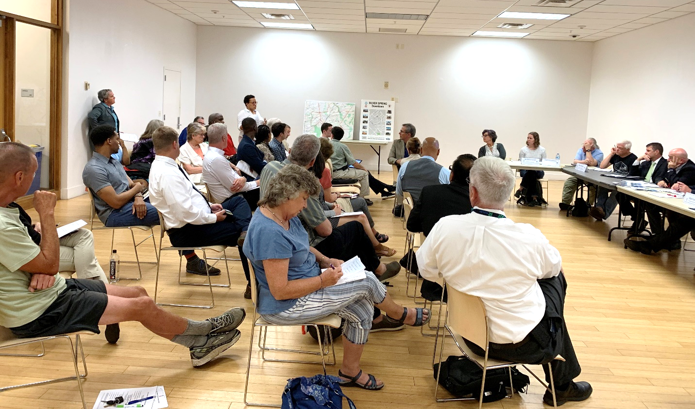 MCDOT addressed the Silver Spring Citizens Advisory Board (CAB) along with about two dozen Silver Spring residents on Monday evening to provide a high-level update on the work of the Department in the Silver Spring area. MCDOT Director Al Roshdieh, with senior staff representing the Department’s various divisions, reviewed ongoing initiatives to advance the department’s key priorities, with a special emphasis on the work in progress in Silver Spring. The briefing covered transit, roads, bike and pedestrian infrastructure and parking, as well as the impact of ongoing state projects. A lively question and answer session followed the presentation during which the Board and residents highlighted local concerns.