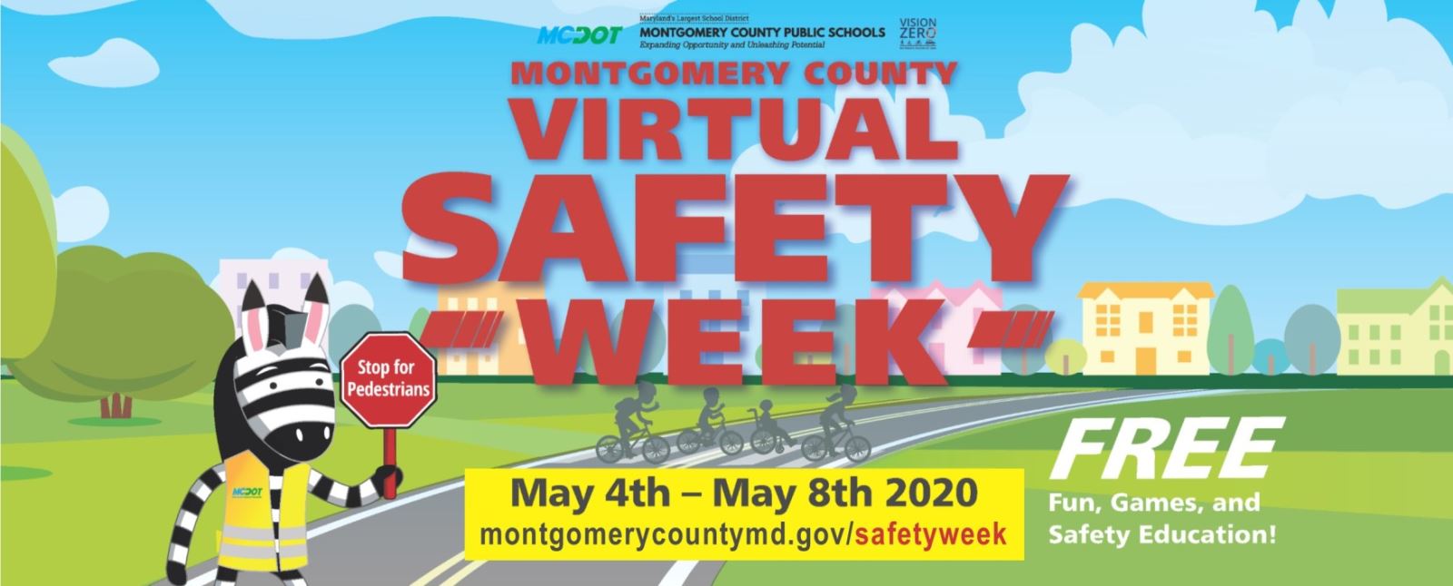 The Montgomery County Department of Transportation’s (MCDOT) “Safe Routes to Schools” program and Montgomery County Public Schools will jointly host the first “Virtual Safety Week” that will start online at 8 a.m. on Monday, May 4, and continue through 5 p.m. on Friday, May 8. This weeklong free event, which has been developed for elementary and middle school students and their families, will emphasize the need to be safe and look out for others in all forms of travel.