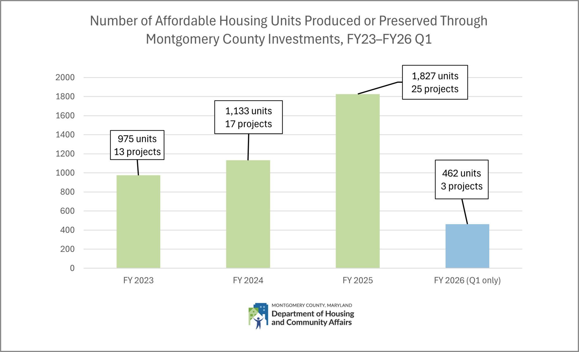 Read DHCA’s FY25 Affordable Housing Pipeline Report and the FY26 Q1 Affordable Housing Pipeline Report for more details.
