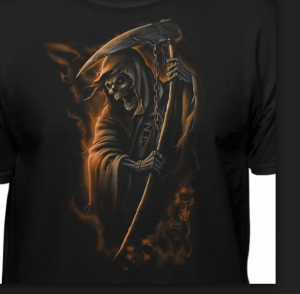 red t-shirt with grim reaper on front. Size medium (example) (Original Image)# # #