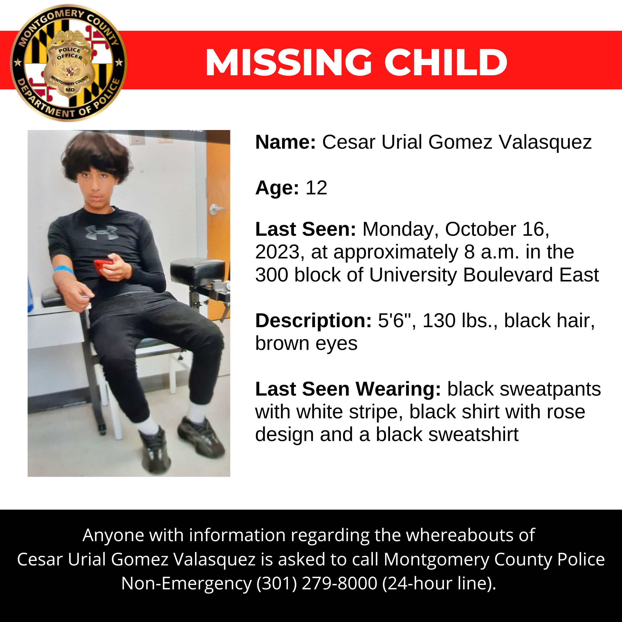 Gaithersburg, MD - Detectives from the Montgomery County Department of Police - Special Victims Investigations Division (SVID) are asking for the public's assistance in locating Cesar Urial Gomez Valasquez.