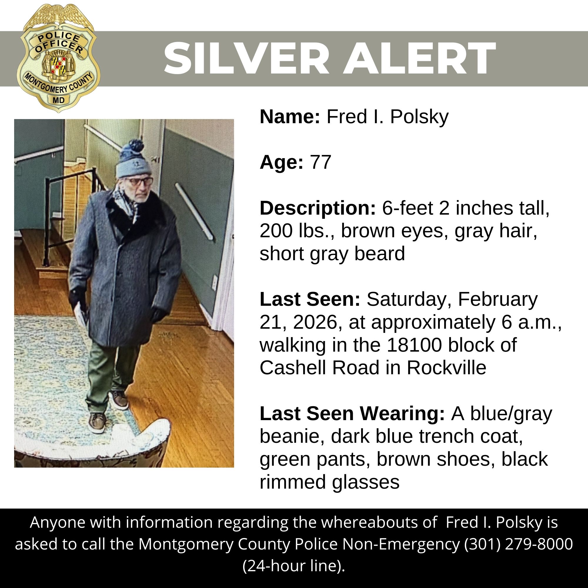Gaithersburg, MD - Detectives from the Montgomery County Department of Police - 1st District Investigative Section are asking for the public's assistance with locating Fred I. Polsky, a missing 77-year-old.