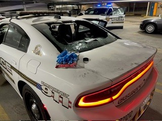 During the incident, two marked Montgomery County Police cruisers were damaged. In one case, an officer was inside his vehicle when the rear window was broken and the windshield was smashed. No officers were injured.